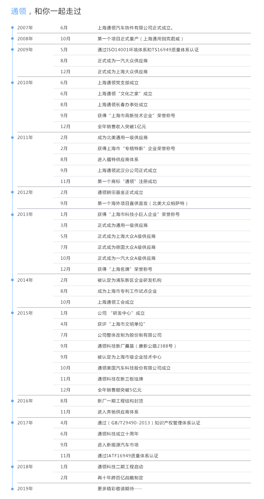 通領(lǐng)科技自成立以來(lái),在社會(huì)各界關(guān)心支持下,把“珍惜所托,超越期望”的承諾放在首位,堅(jiān)持持續(xù)改善、精益求精,逐漸發(fā)展成為一家在海內(nèi)外享有盛譽(yù)的公司。時(shí)至今日,面對(duì)中國(guó)經(jīng)濟(jì)轉(zhuǎn)型升級(jí)和汽車行業(yè)競(jìng)爭(zhēng)變化帶來(lái)的機(jī)遇和挑戰(zhàn),我們堅(jiān)信變革與創(chuàng)新能使未來(lái)更加美好,通領(lǐng)科技將加快推進(jìn)企業(yè)改革調(diào)整,不斷增強(qiáng)整體運(yùn)營(yíng)能力,努力適應(yīng)外部市場(chǎng)環(huán)境和行業(yè)變化,持續(xù)提高企業(yè)核心競(jìng)爭(zhēng)力。
